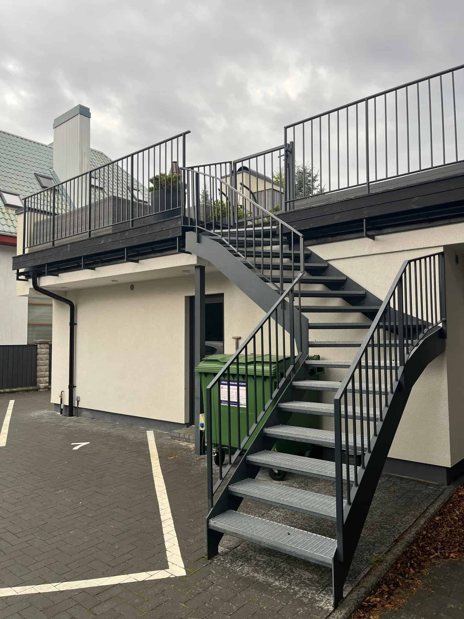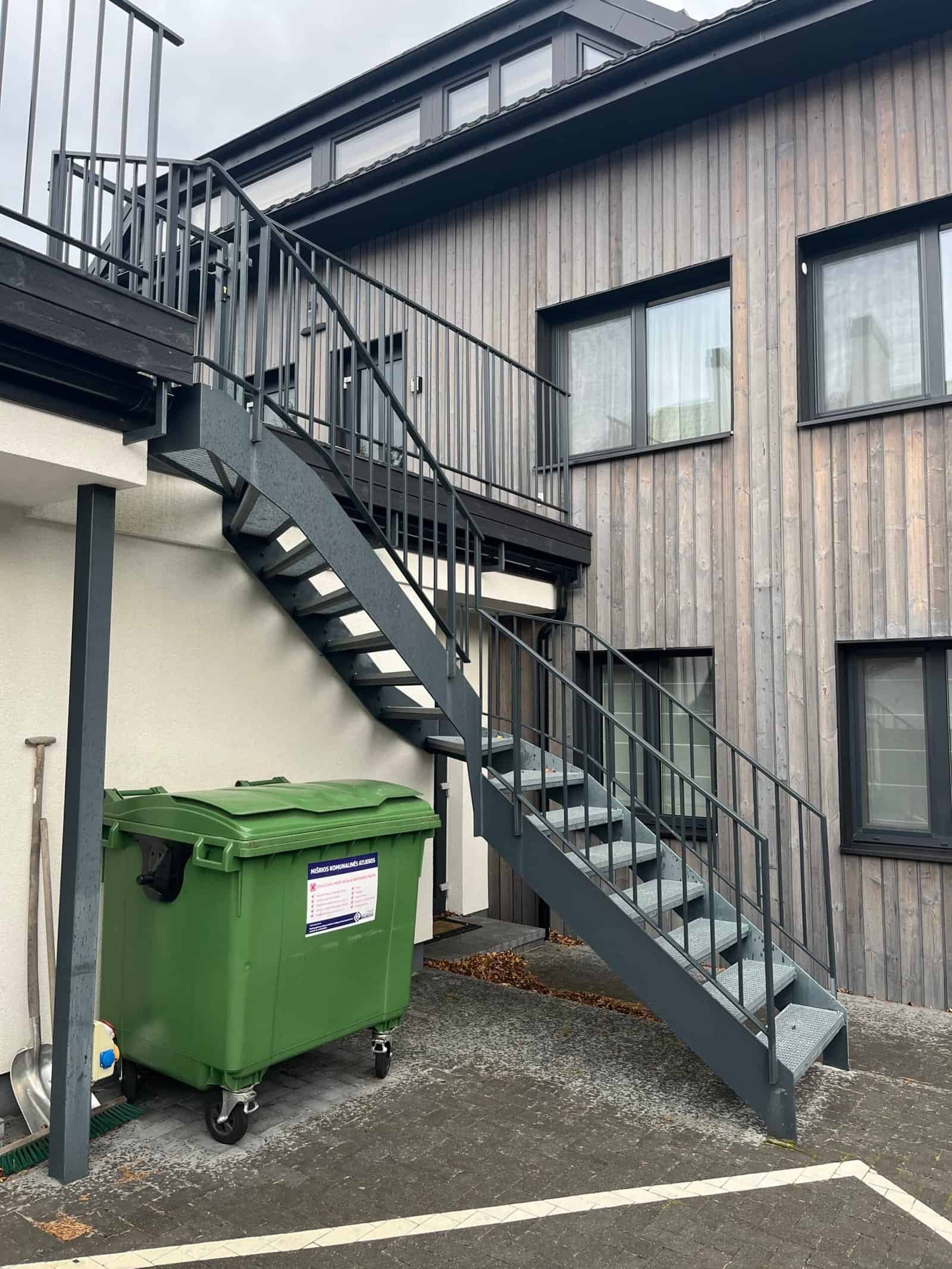 Lauko laiptai, turėklai, šukų tipo vartai ir tvora