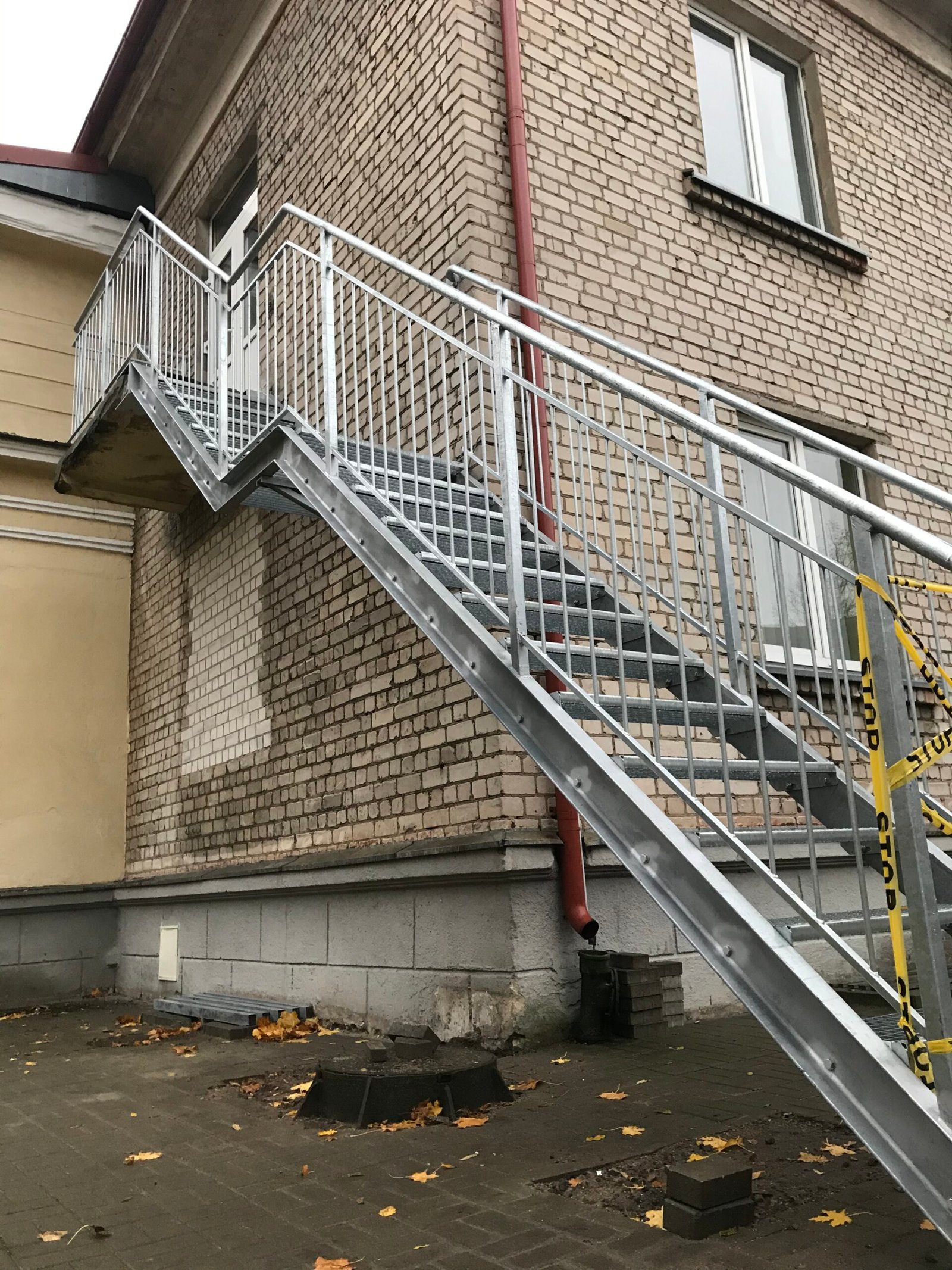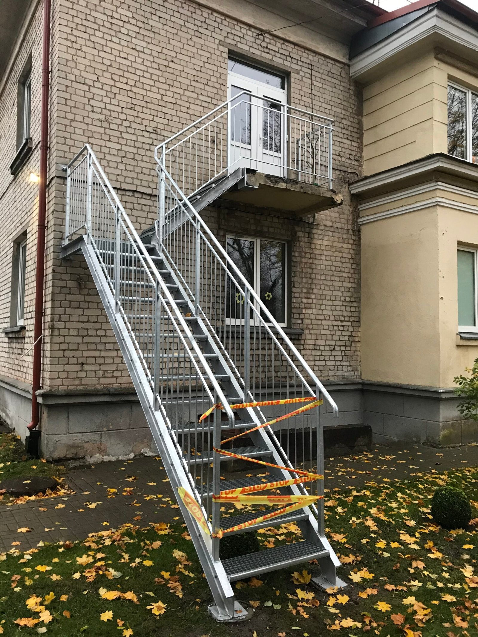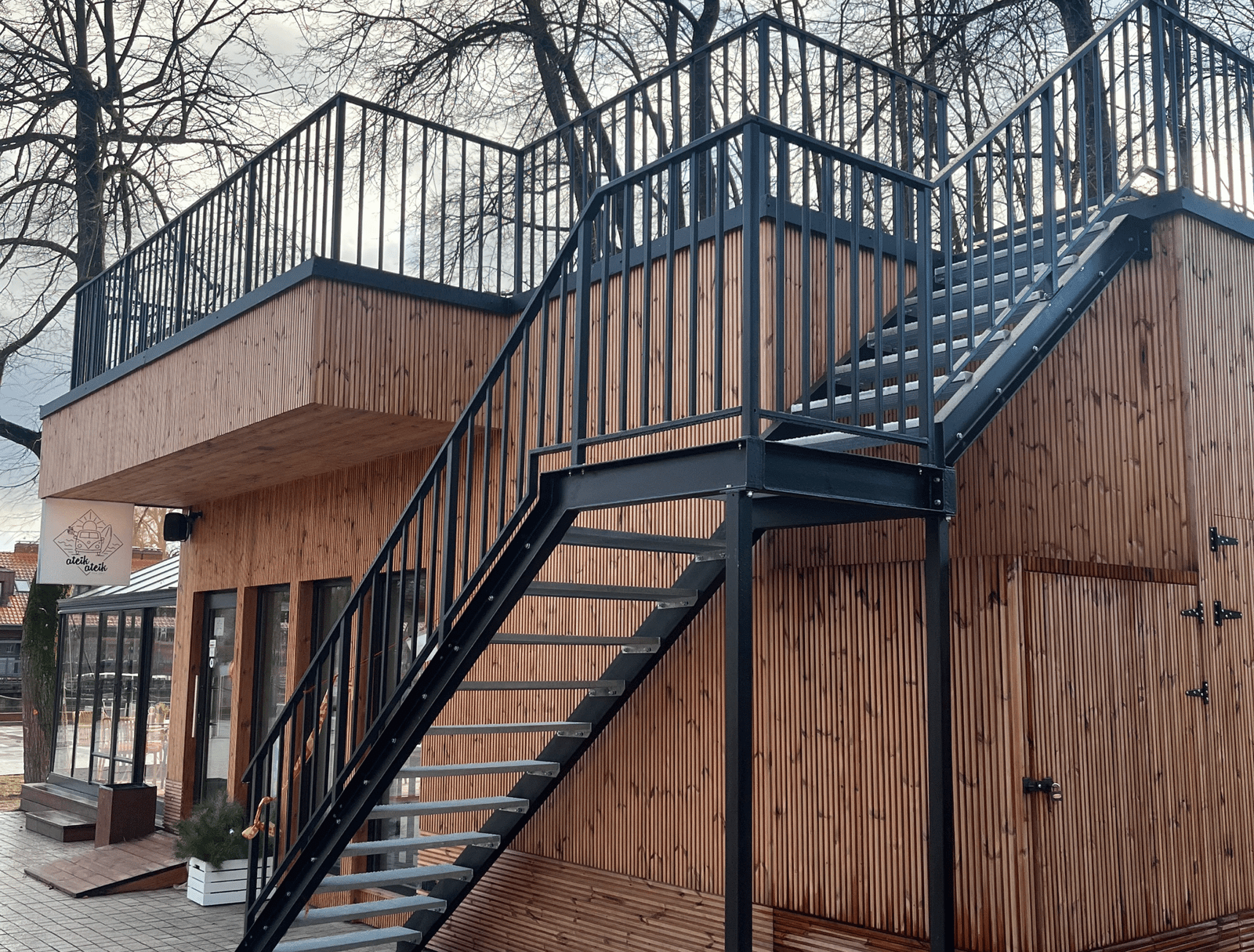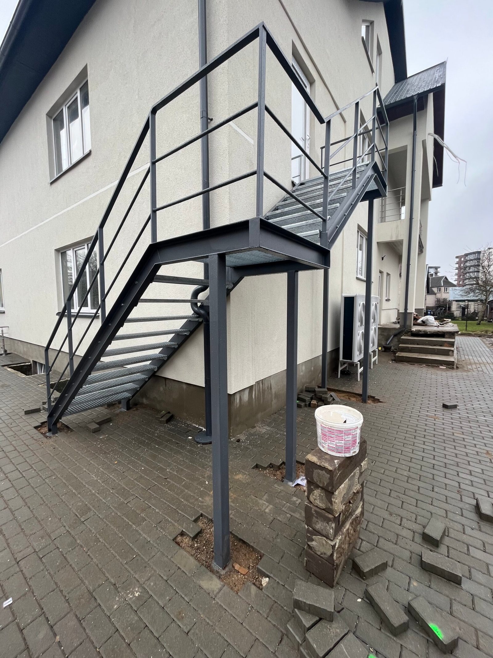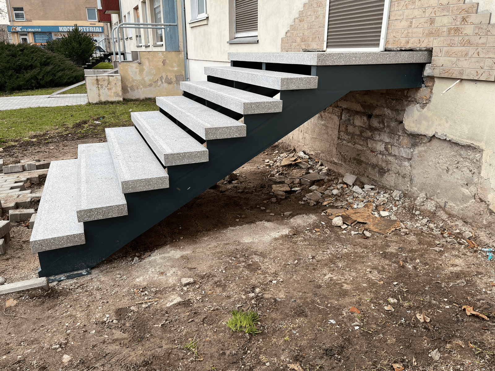 Metaliniai lauko laiptai su terasinių betono pakopomis