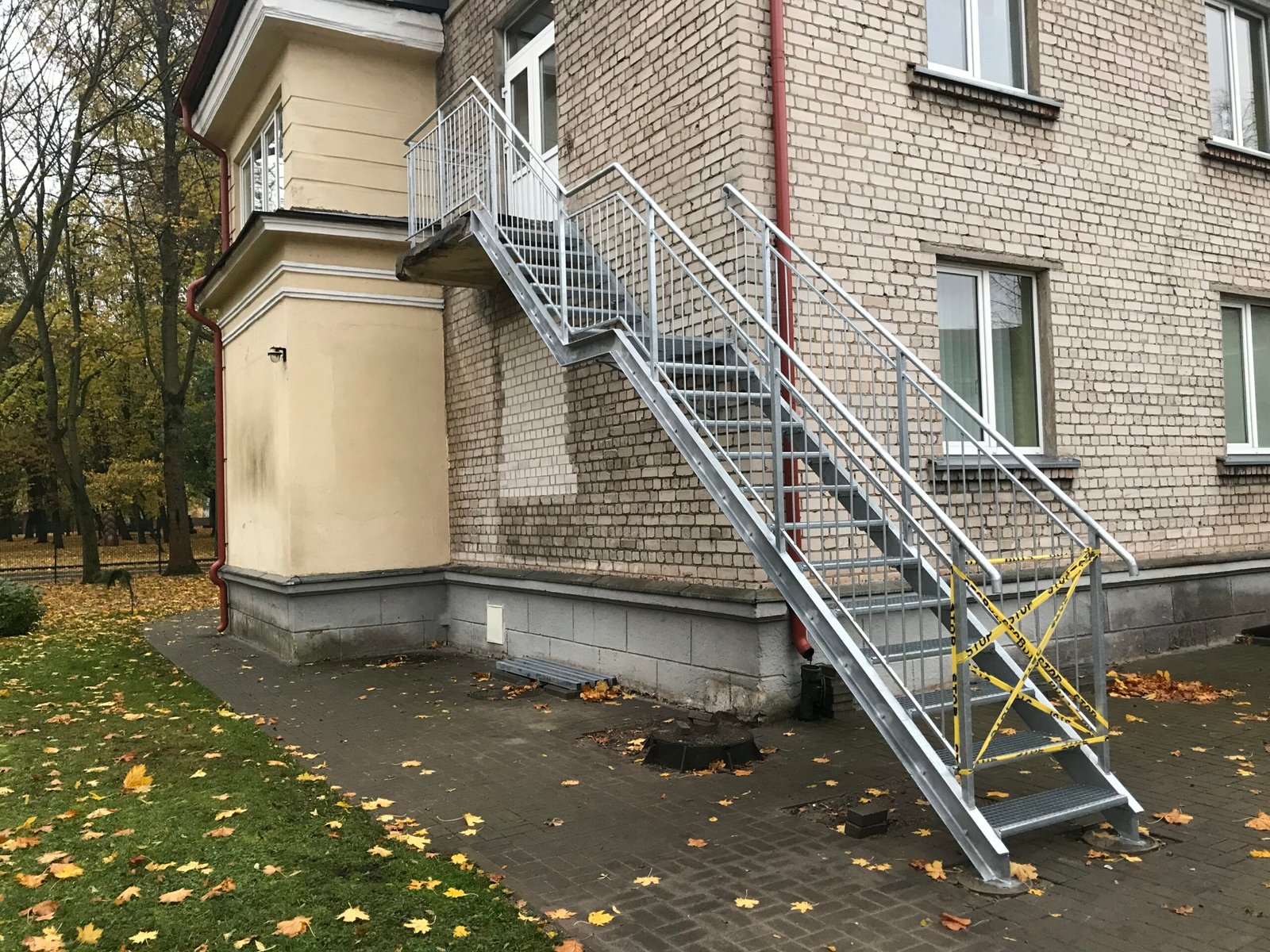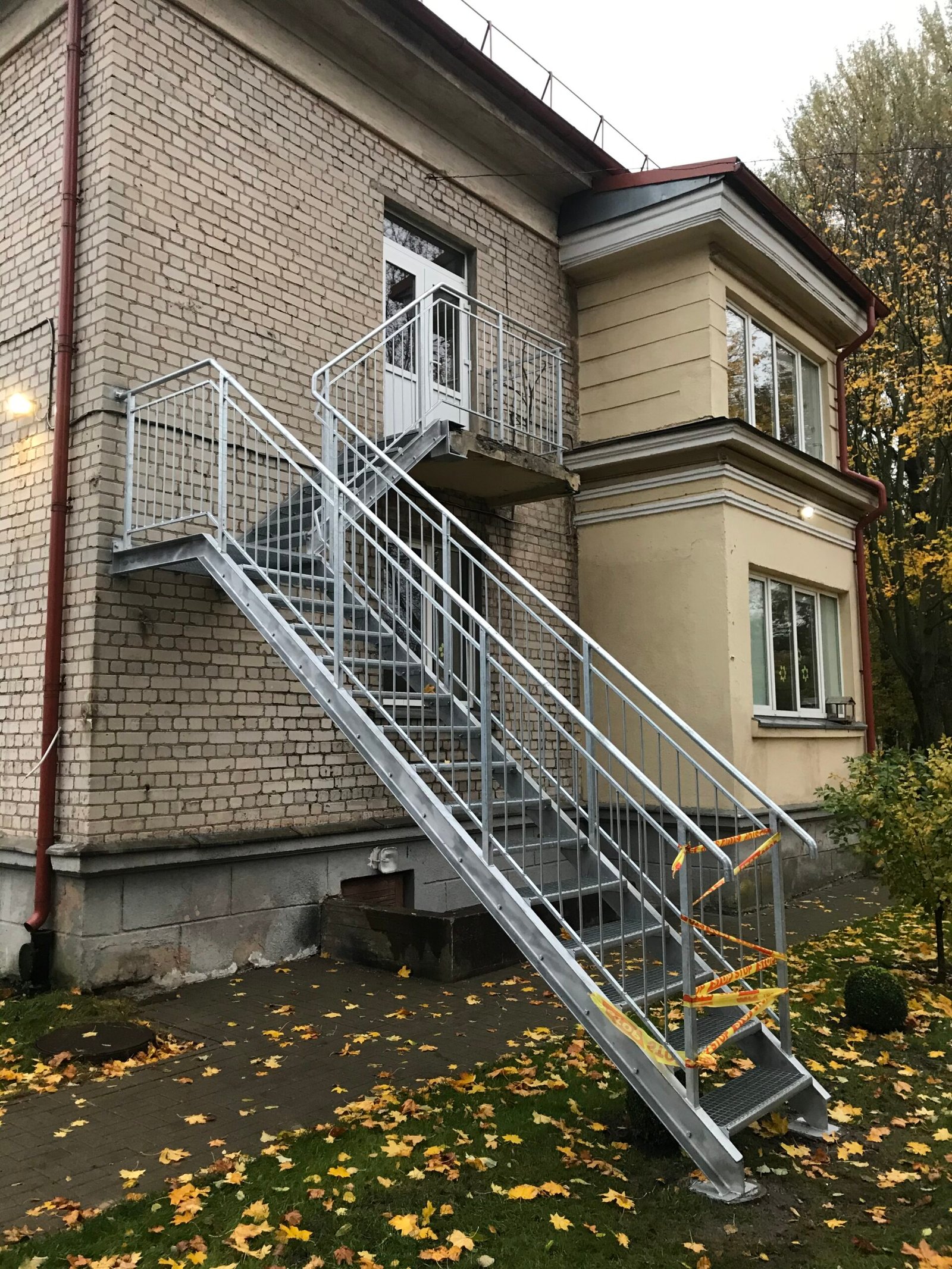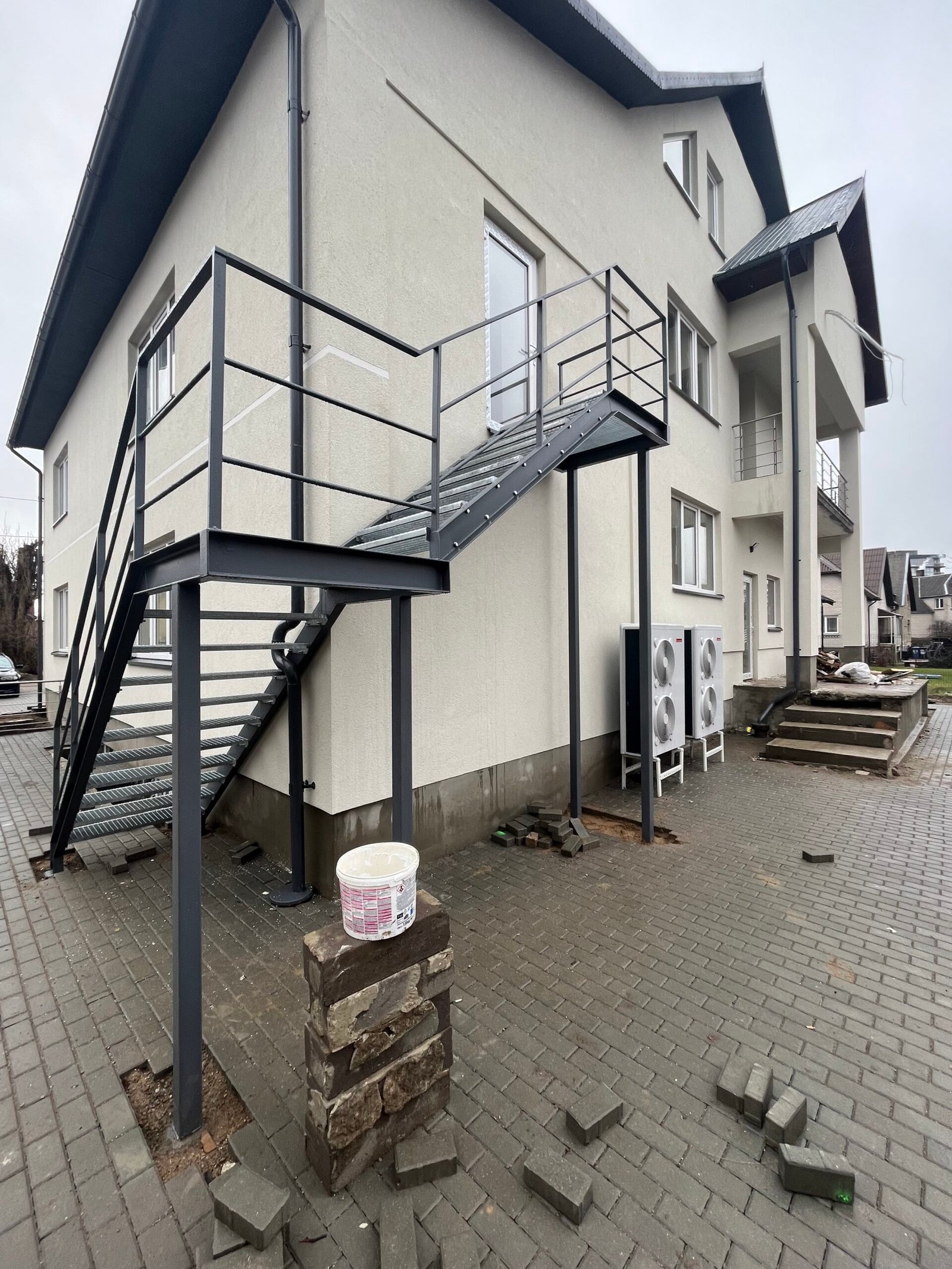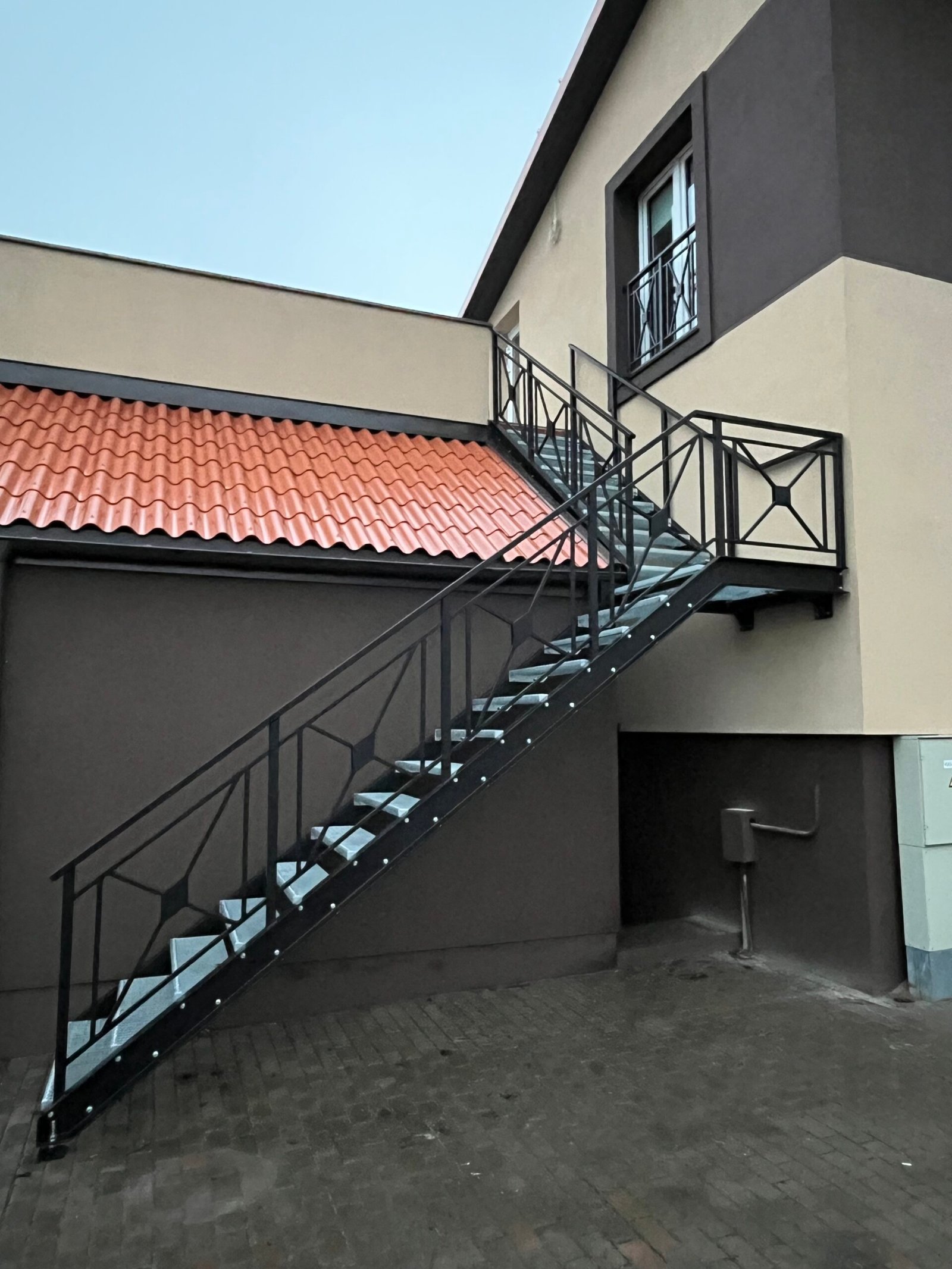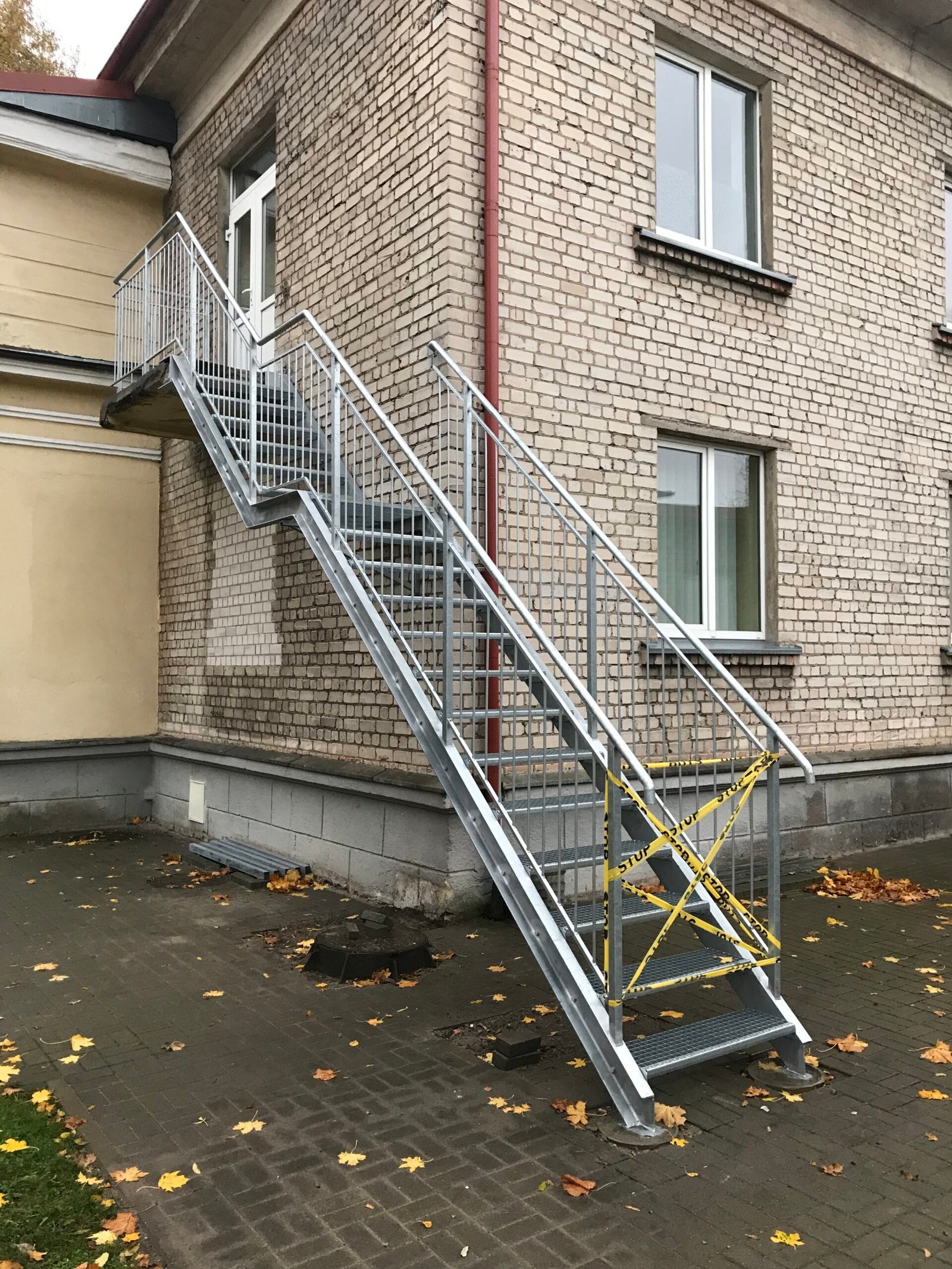Metaliniai lauko laiptai su terasinių betono pakopomis