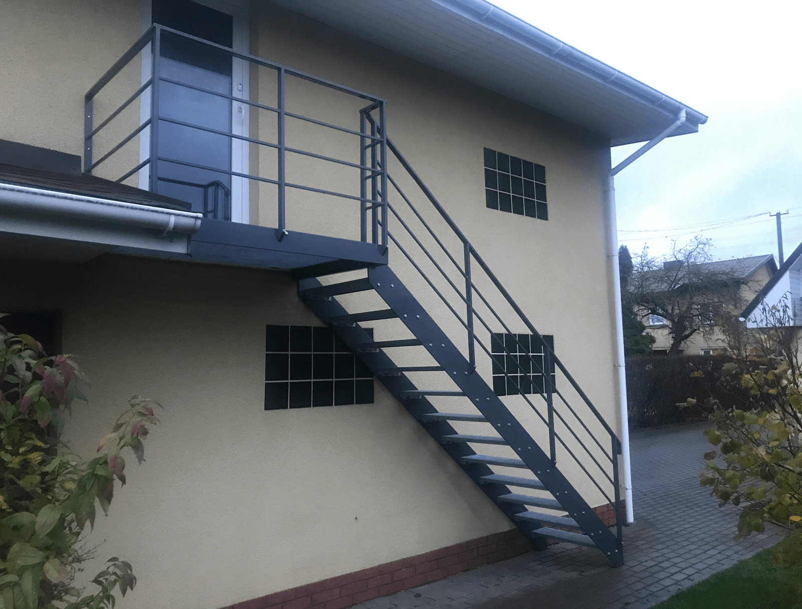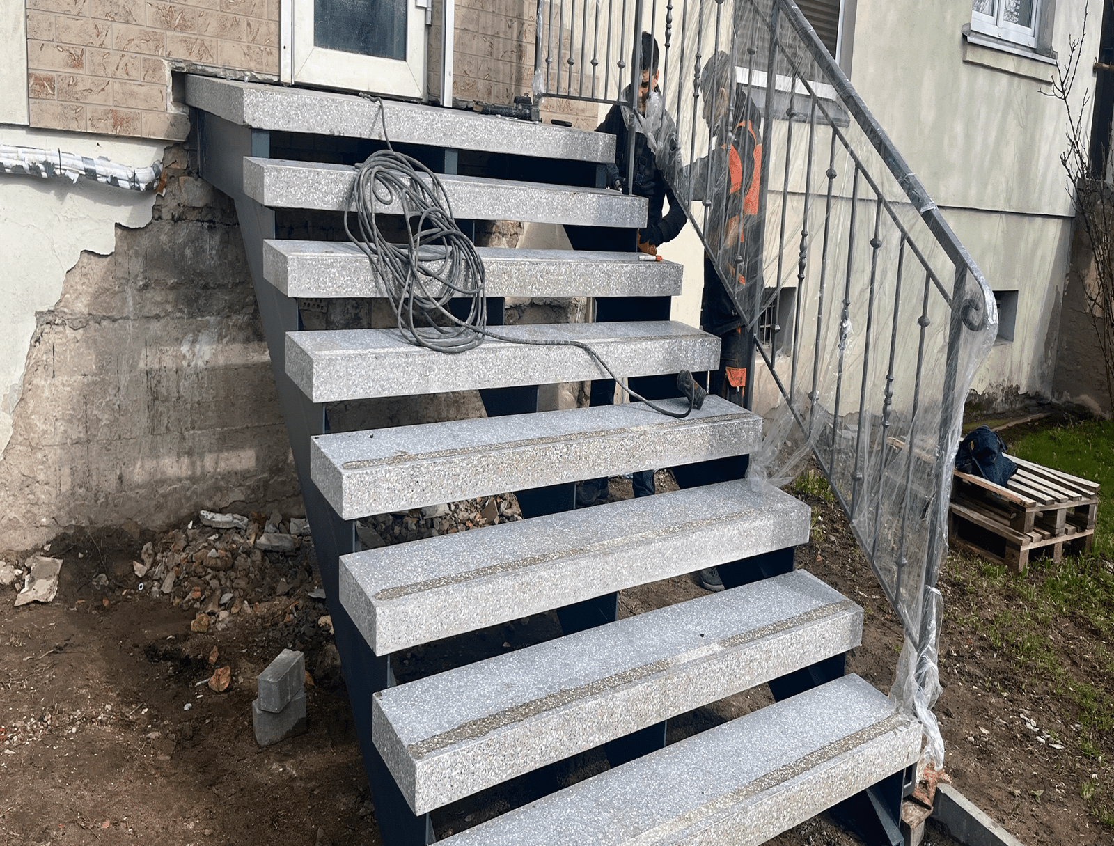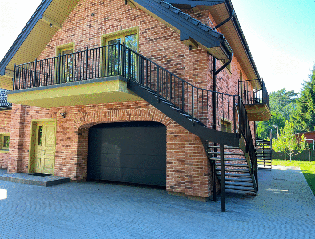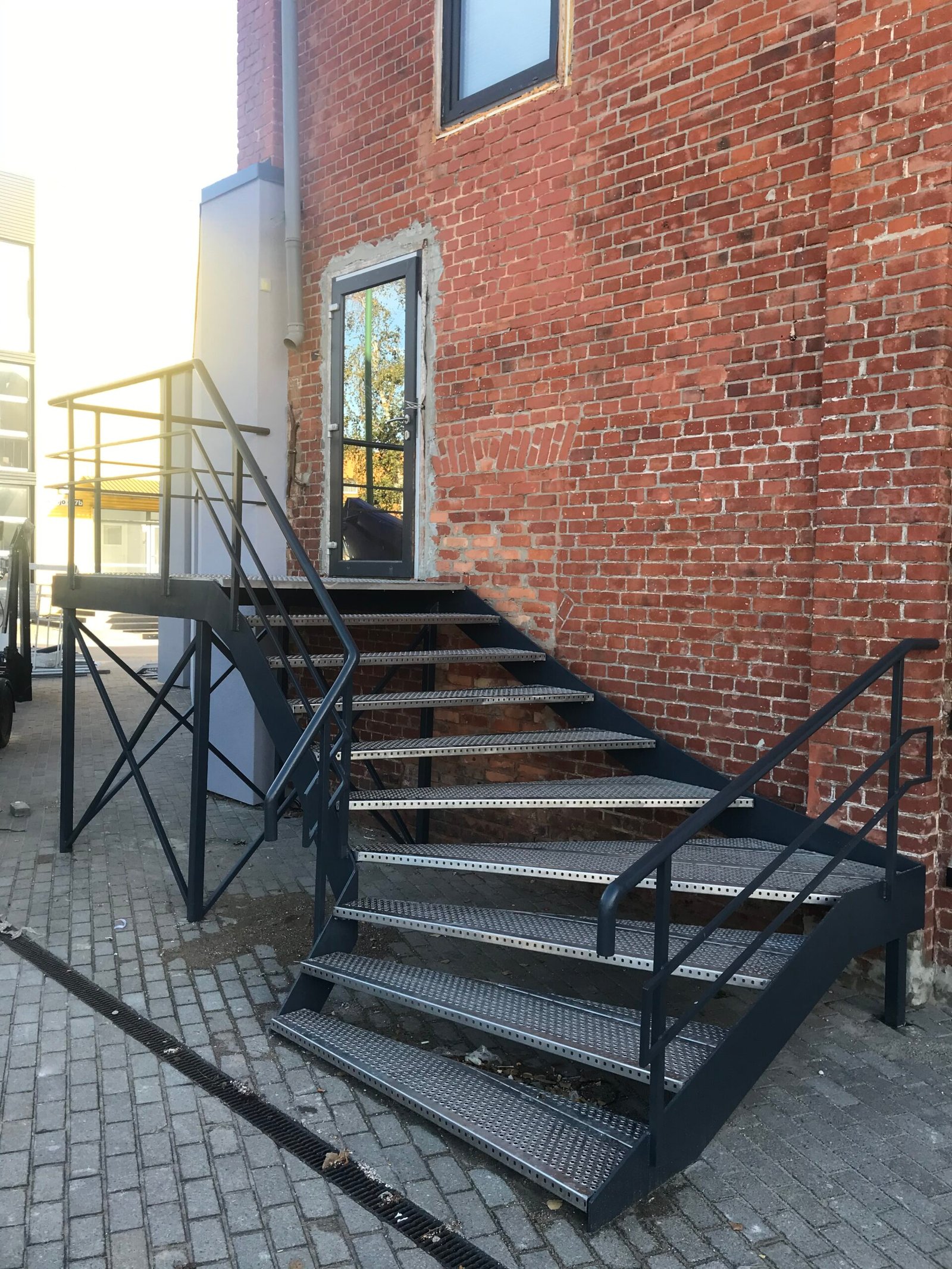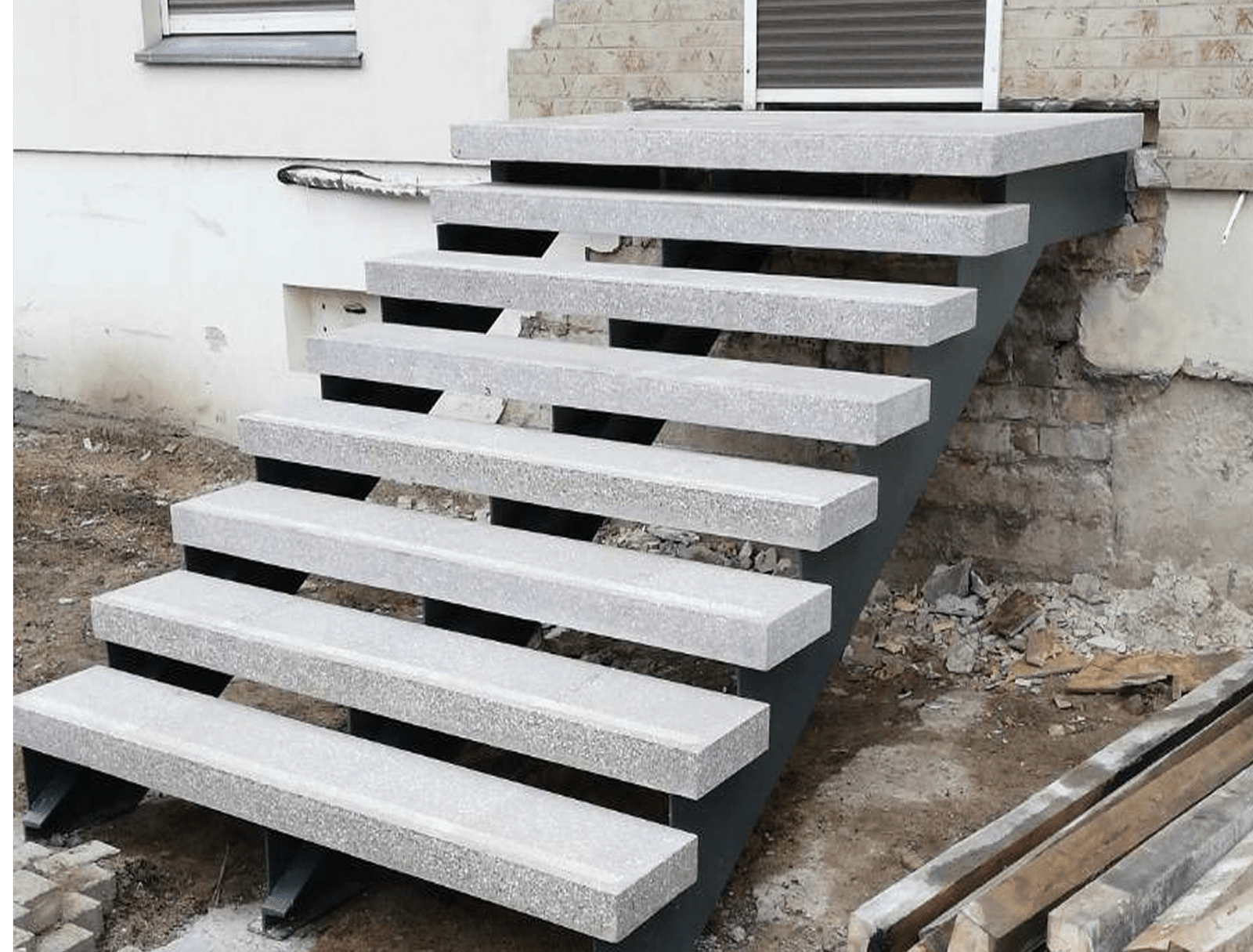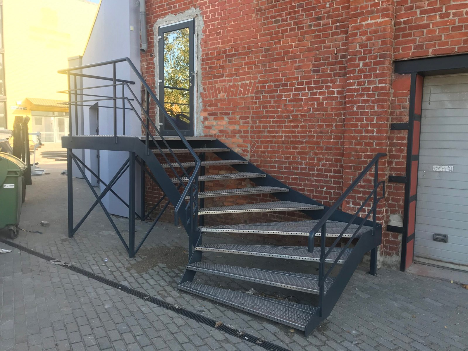 Metaliniai lauko laiptai su terasinių betono pakopomis
