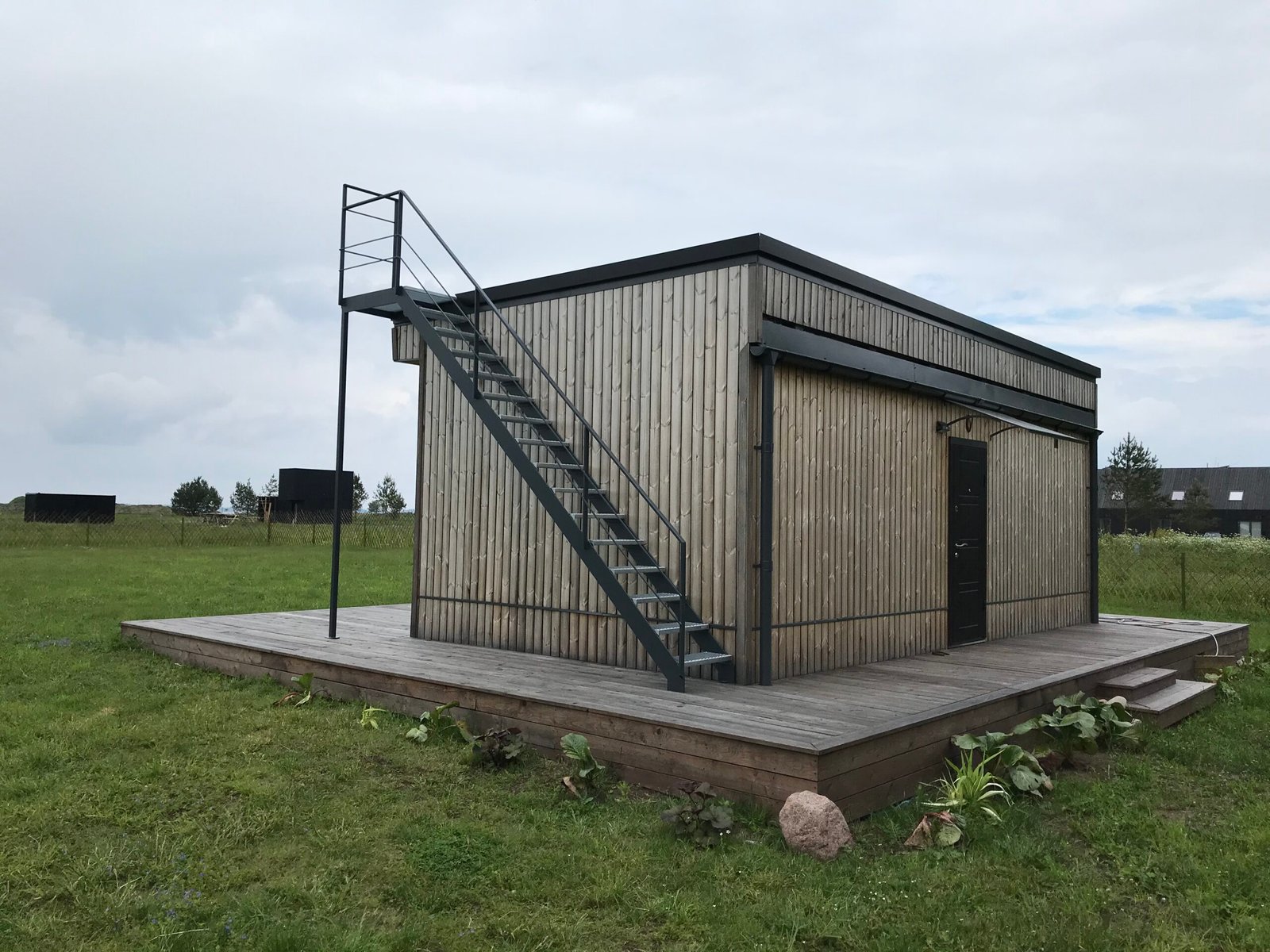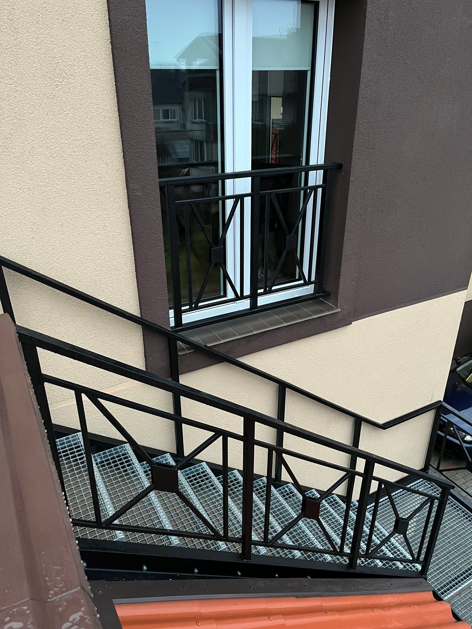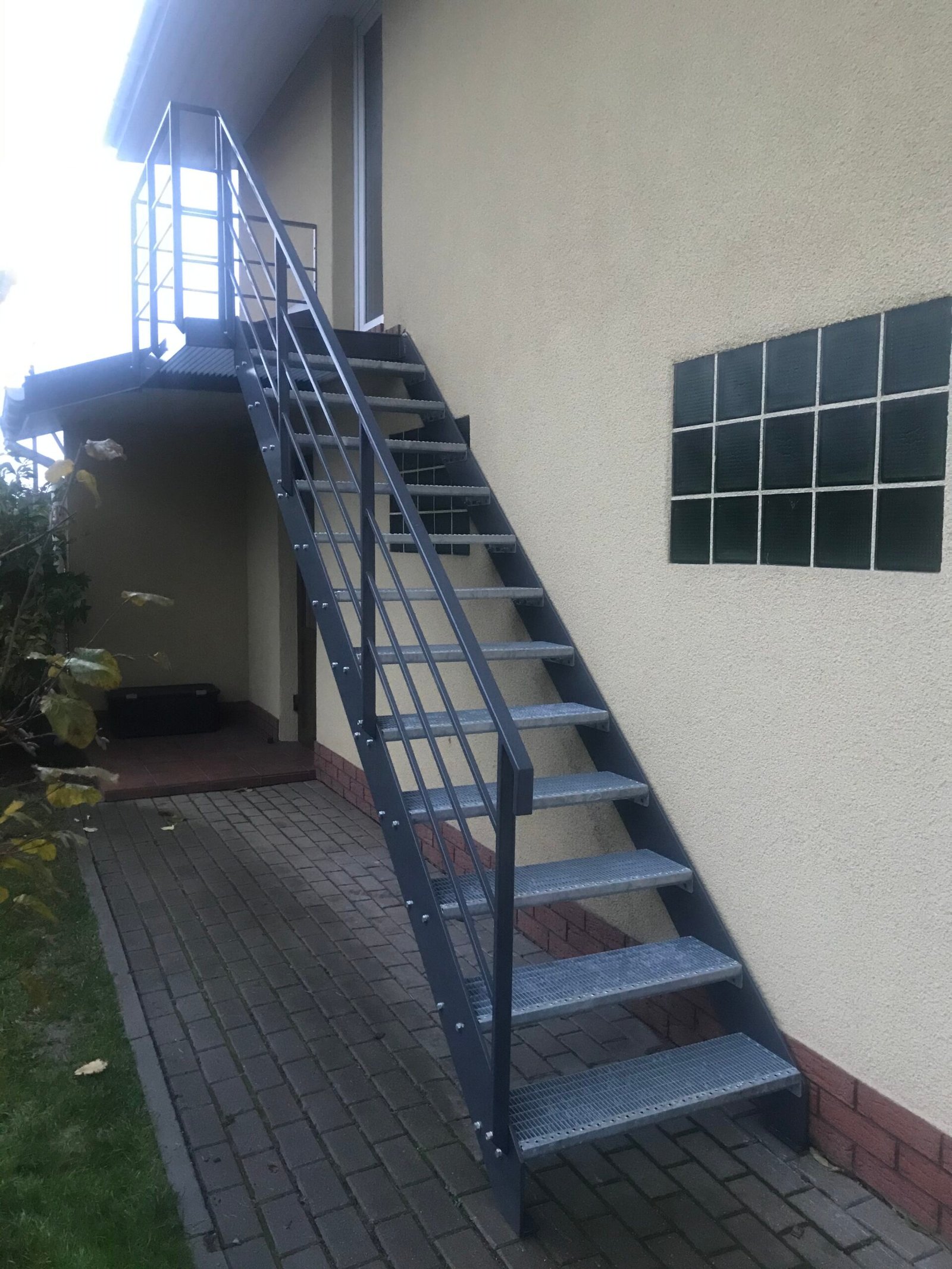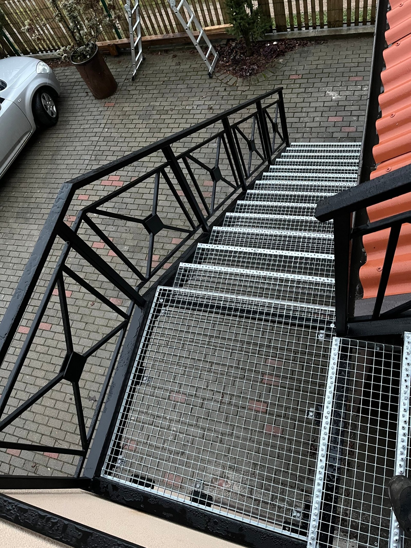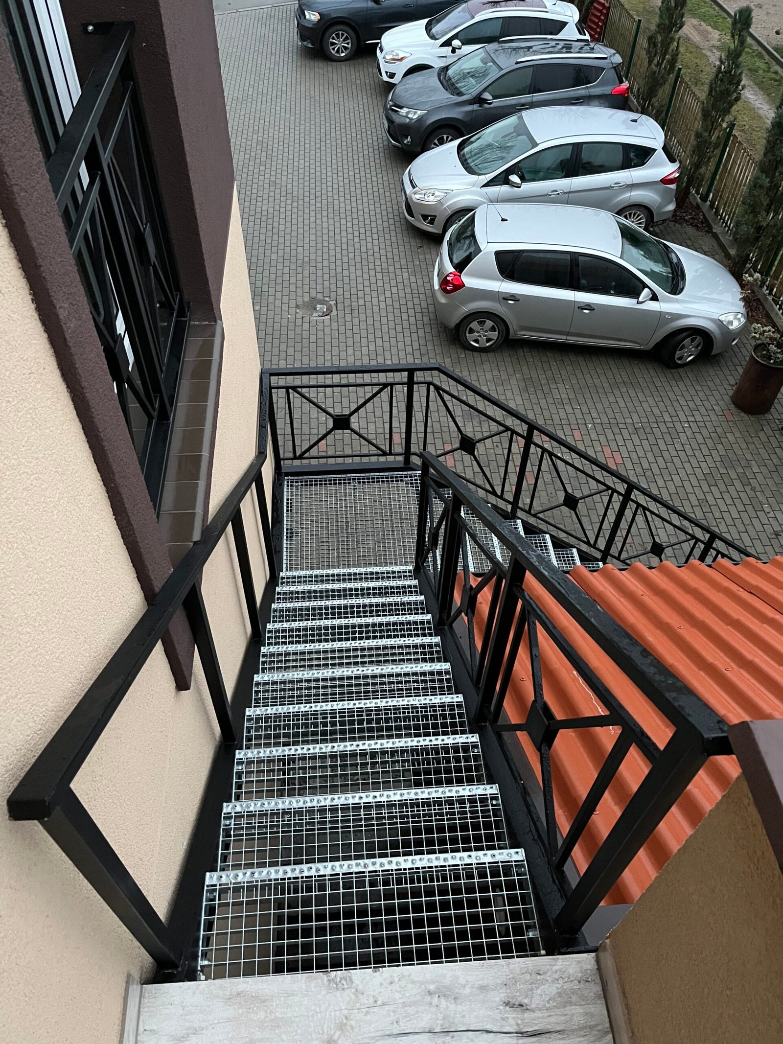 Metaliniai lauko laiptai su terasinių betono pakopomis