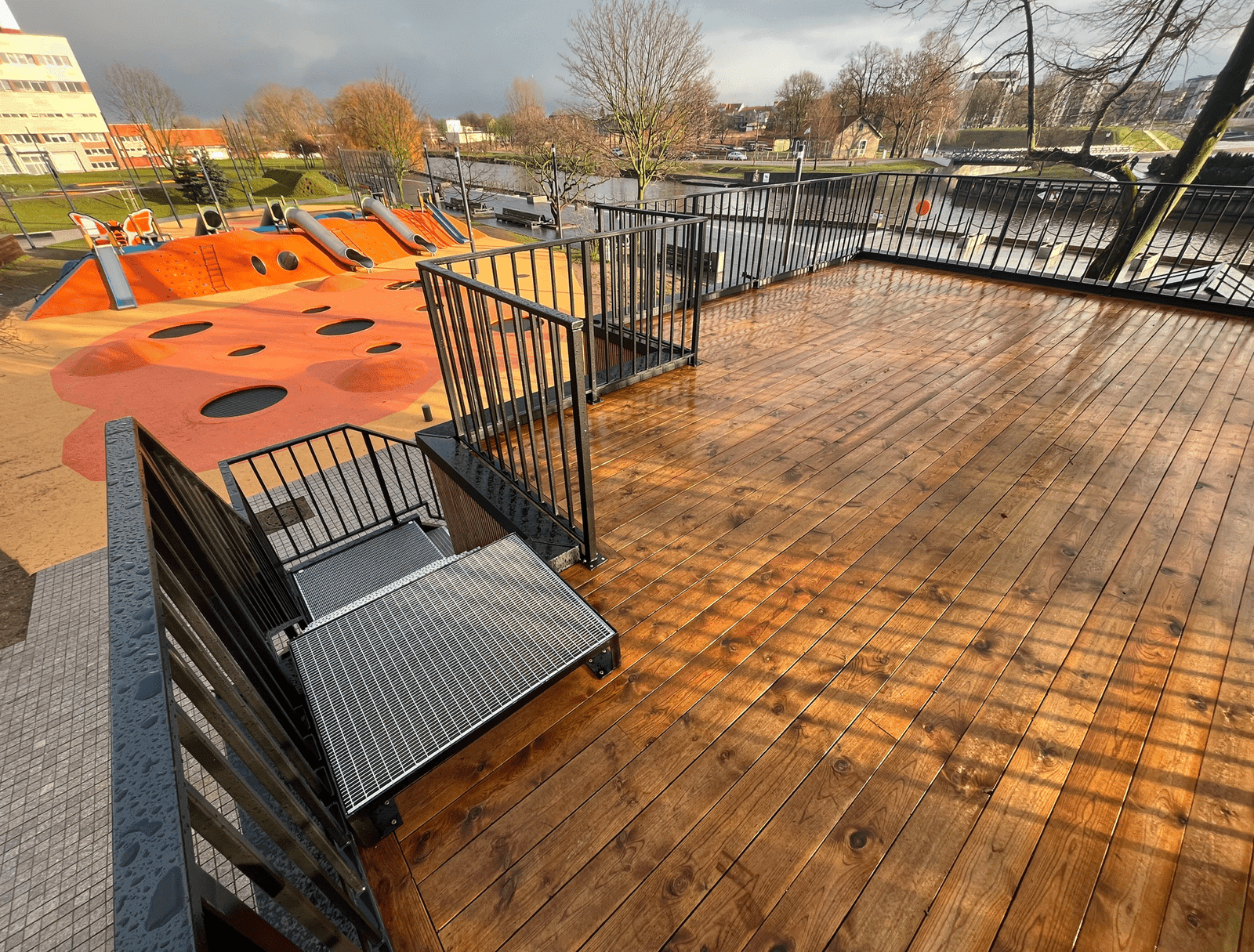 Lauko laiptai ir turėklai, pakopos nerūdijančio plieno