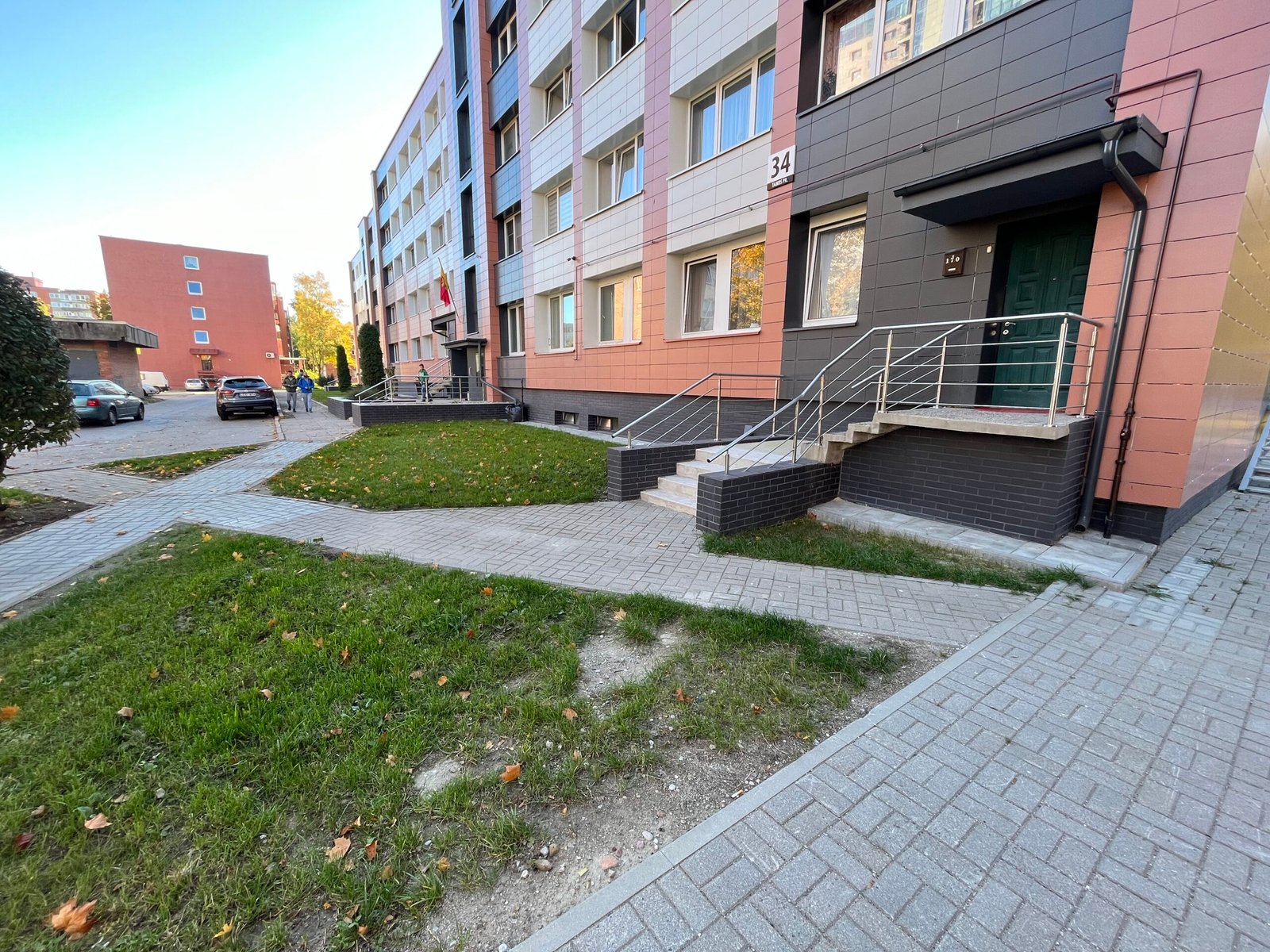 Daugiabučių įėjimo laiptai, betoninės aikštelės ir pakopos, nerūdijančio plieno turėklai