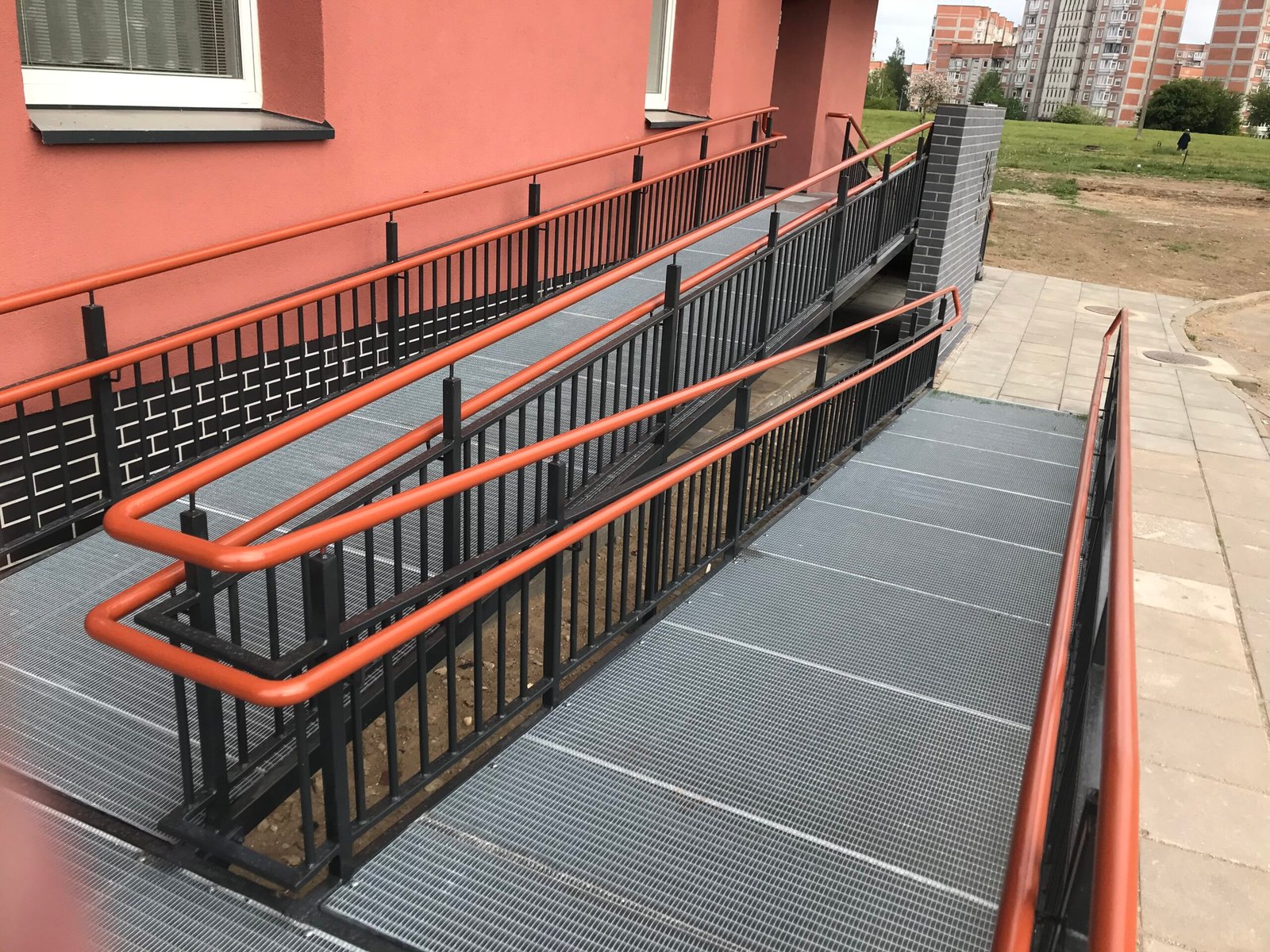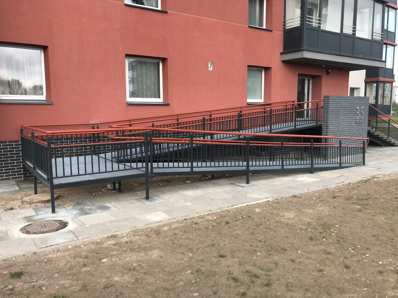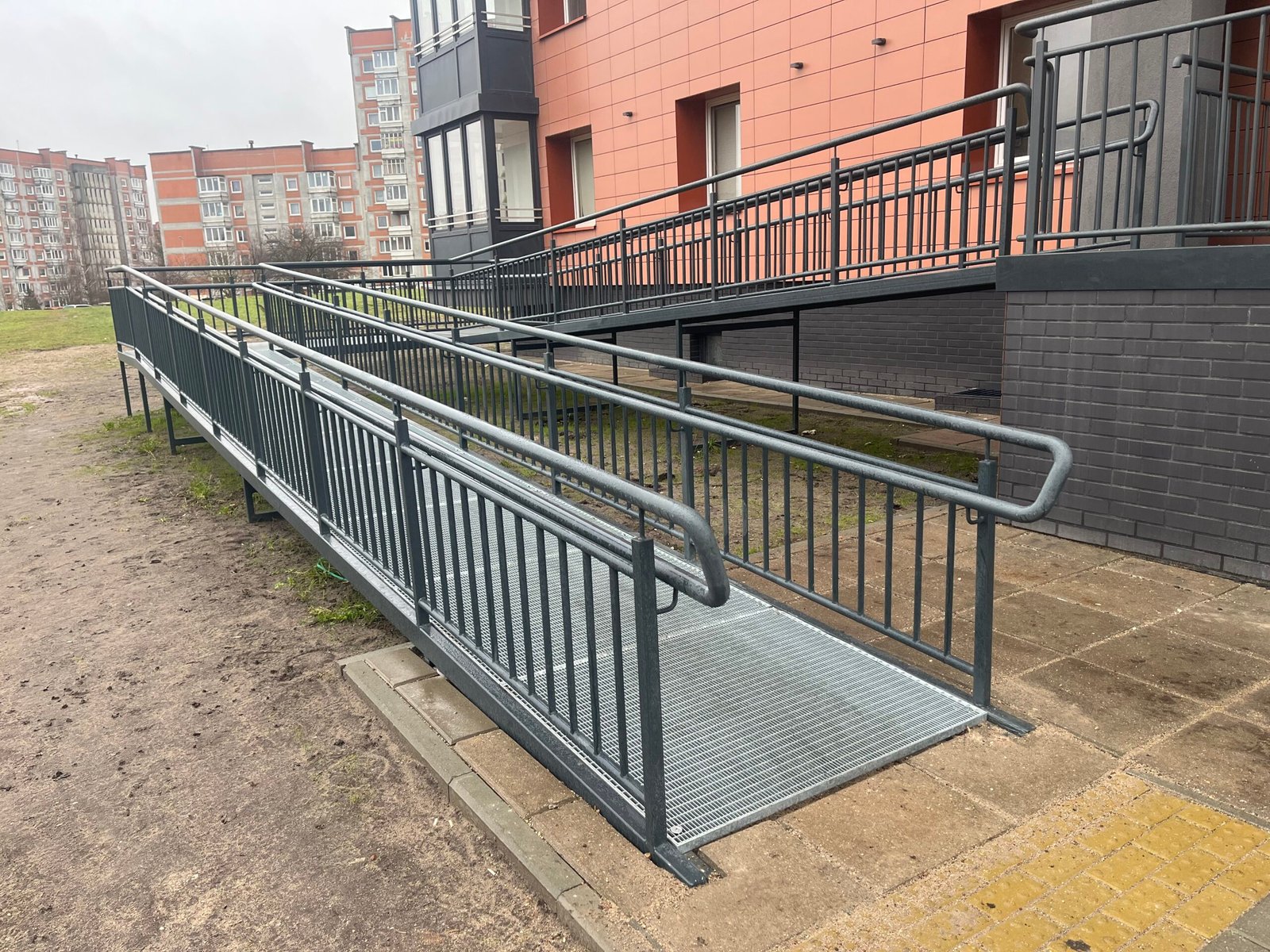 ŽN pandusas, lauko laiptai ir turėklai, teracinio betono aikštelė ir pakopos