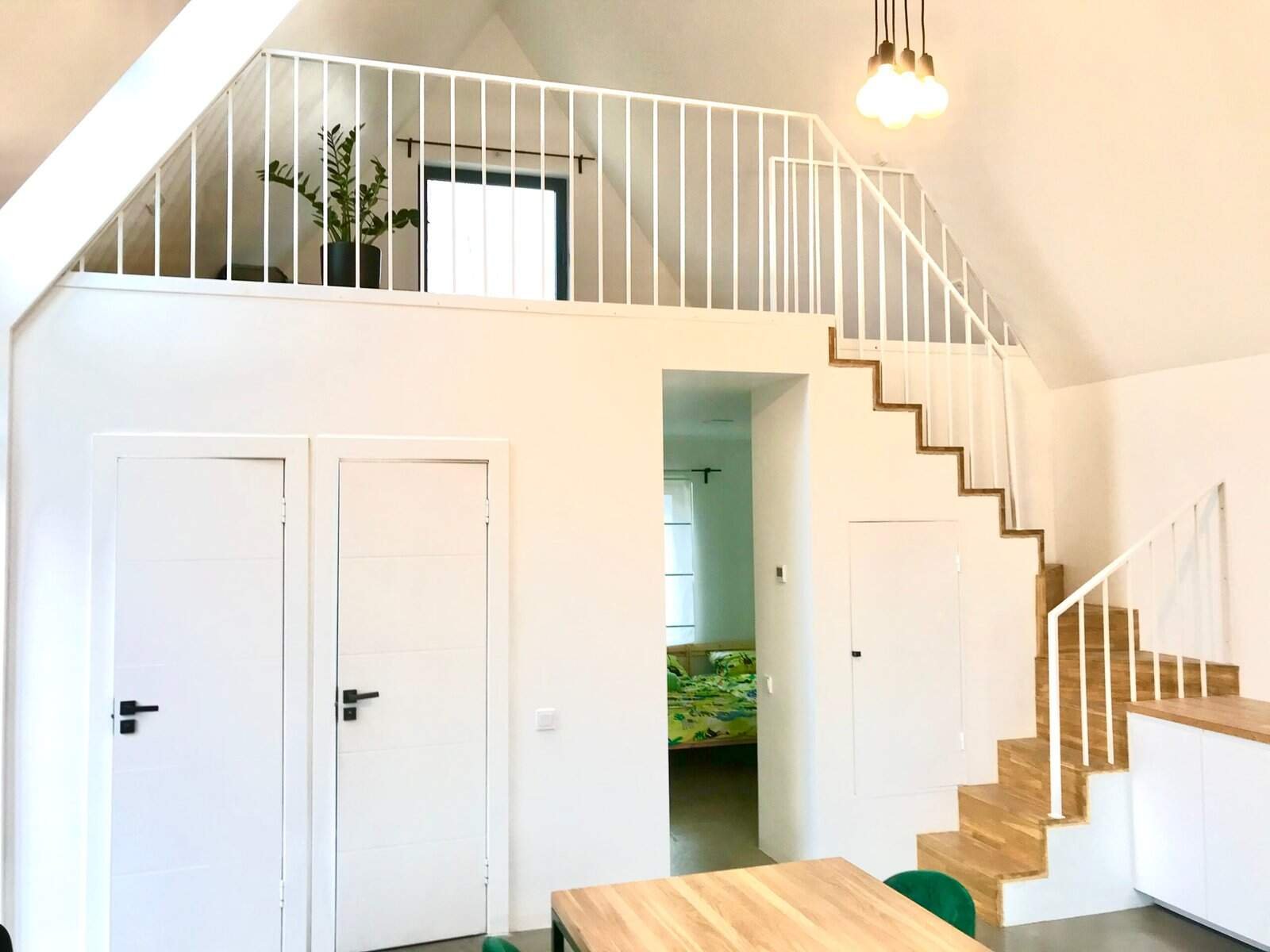 Vidaus laiptai su ąžuolo pakopomis turėklais